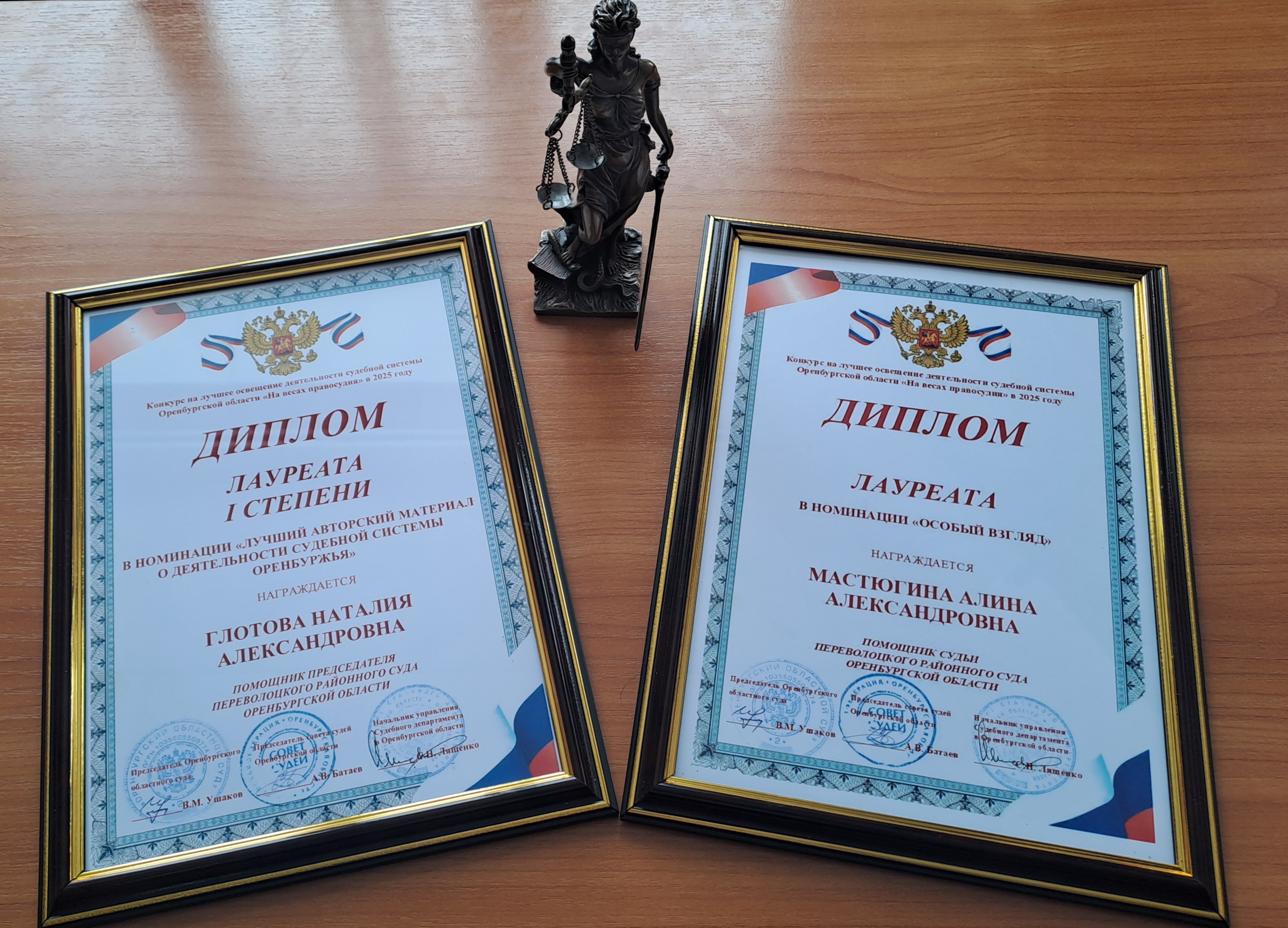 Советом судей Оренбургской области был проведен конкурс на лучшее освещение деятельности судебной системы Оренбургской области «На весах правосудия» среди журналистов, средств массовой информации и специалистов судов Оренбургской области в 2025 году. Победителем в нем стала, в номинации «Лучший авторский материал о деятельности судебной системы Оренбуржья» Глотова Н.А., помощник председателя Переволоцкого районного суда Оренбургской области. Лауреатом в номинации «Особый взгляд»- Мастюгина А.А., помощник судьи Переволоцкого районного суда Оренбургской области.